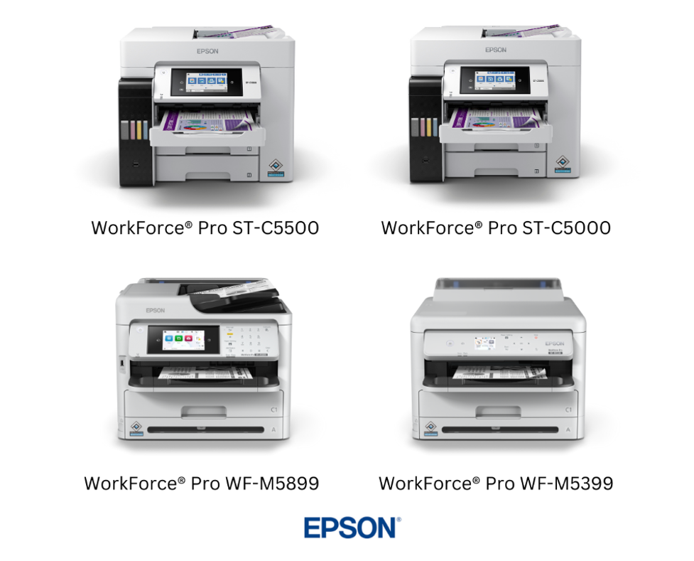 LOS ALAMITOS, Calif. – Oct. 3, 2023 – Epson America, Inc., a worldwide leader in inkjet printing solutions, today added four new A4 business printers to its WorkForce® Pro portfolio – the WorkForce Pro ST-C5500 and ST-C5000 Supertank Color MFPs, and WorkForce Pro WF-M5899 Monochrome MFP and WF-M5399 Monochrome Printer. With PrecisionCore Heat-Free® technology, an advanced printing technology engineered to power the world’s top performing printers, these new desktop solutions provide businesses with both functional and environmental benefits. Delivering high performance at a great value, the Supertank MFPs are ideal for retail, education and corporate environments, while the monochrome models are ideal for government, financial and legal applications.